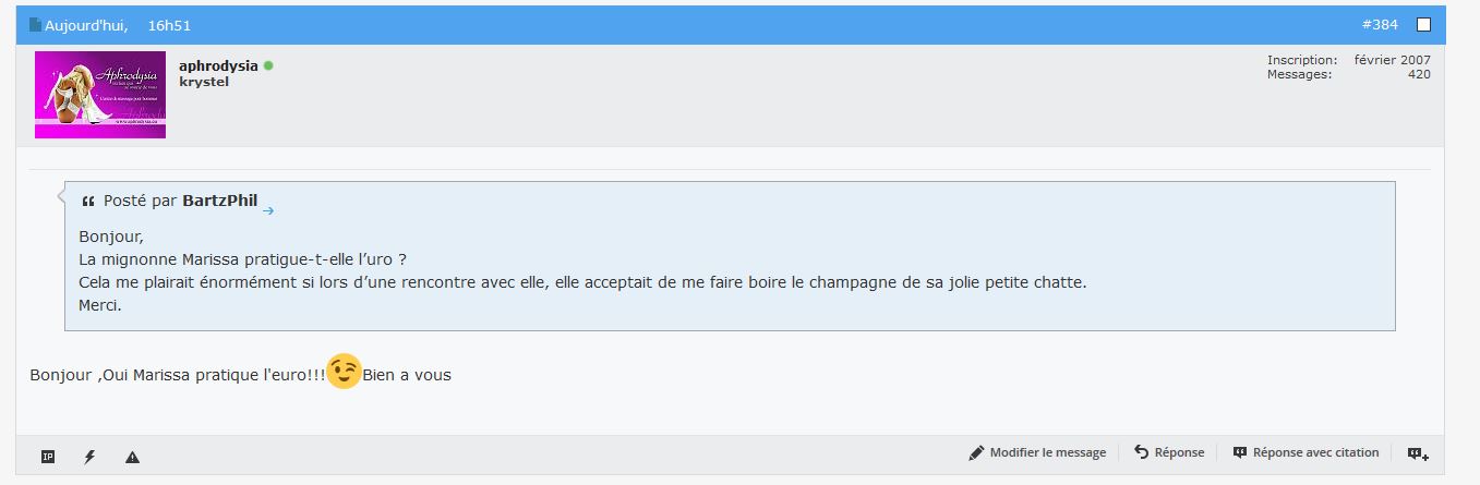 Probablement une l’échangiste.Je confirme, l’échange des couilles et pétale de rose... elle adore jouer avec sa langue.