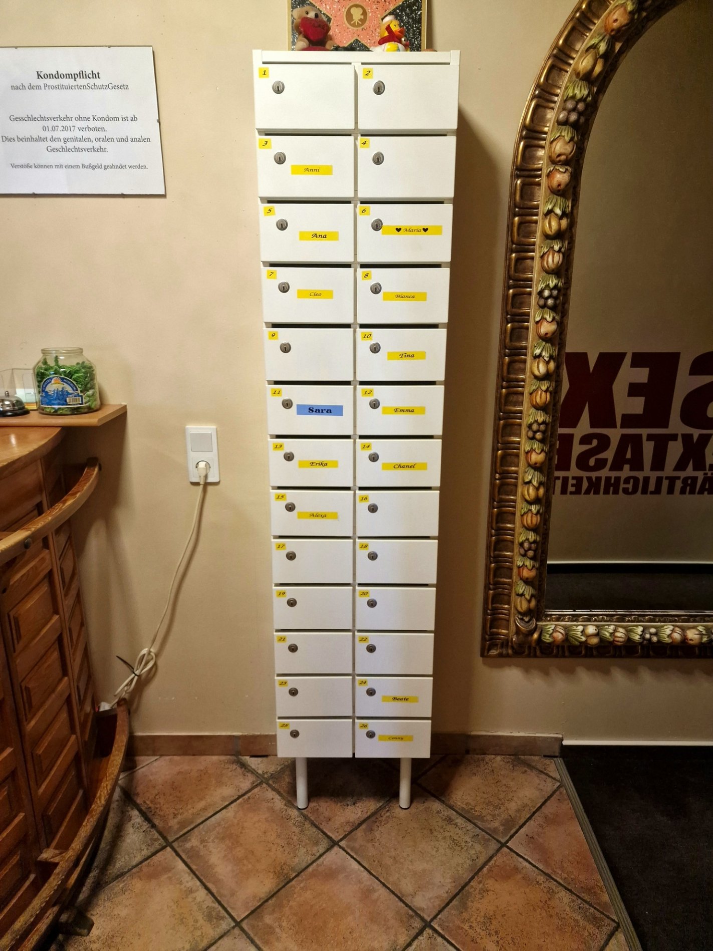 Sur les casiers qui ornent l'entrée, on dénombre environ une quinzaine de pensionnaires alors qu'en ce jour, on peut diviser ce chiffre par deux. Point de trace de Lavinia.