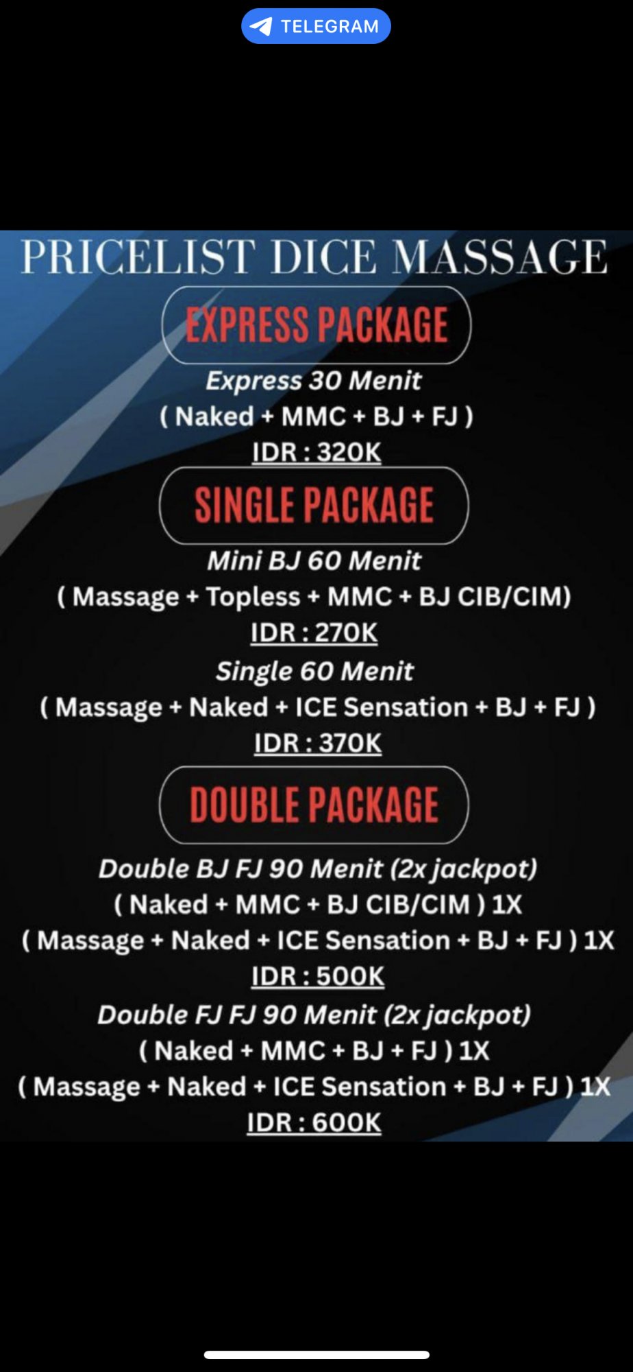 Sur leur Instagram on peut chopper leur télégram ensuite aussi et voir plus d’infos (tarifs, photos des filles etc) et Kaskus c’est leur youppie à eux, pas mal de reviews pour avoir un avis définitif. Bref c’est bien ficelé tout ca et souvent des comptes similaires suggérés qui font découvrir de nouvelles adresses de salons proches.